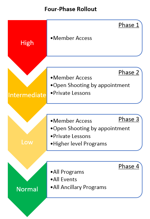 Movement from one phase to the next will be based on risk factors determined by state and local mandates. Transitioning to another phase is not finite, and it is possible to move from a lower to higher risk phase if current data warrants such a move.